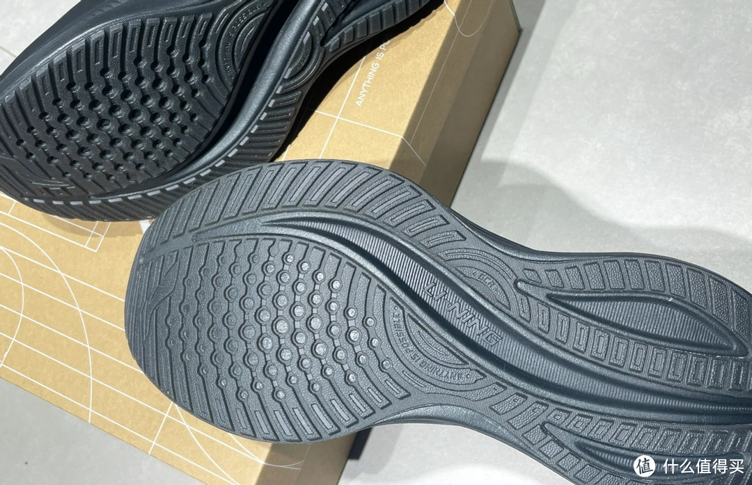 这鞋颜值挺高的,简约大气。配置不算高,但是在这个价位是有性价比的。大底防滑纹路,还有一条引导槽线。