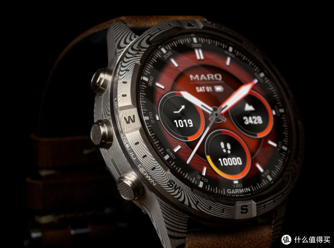 与MARQ系列的其他表款一致,探险家大马士革钢典藏版汇集了Garmin健康监测、训练和智能功能。